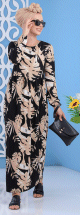 Robe longue imprimée motifs feuilles (Mode musulmane) - Couleur kaki - REF. 33179 (28.00 €) - En Promotion à 22.90 €