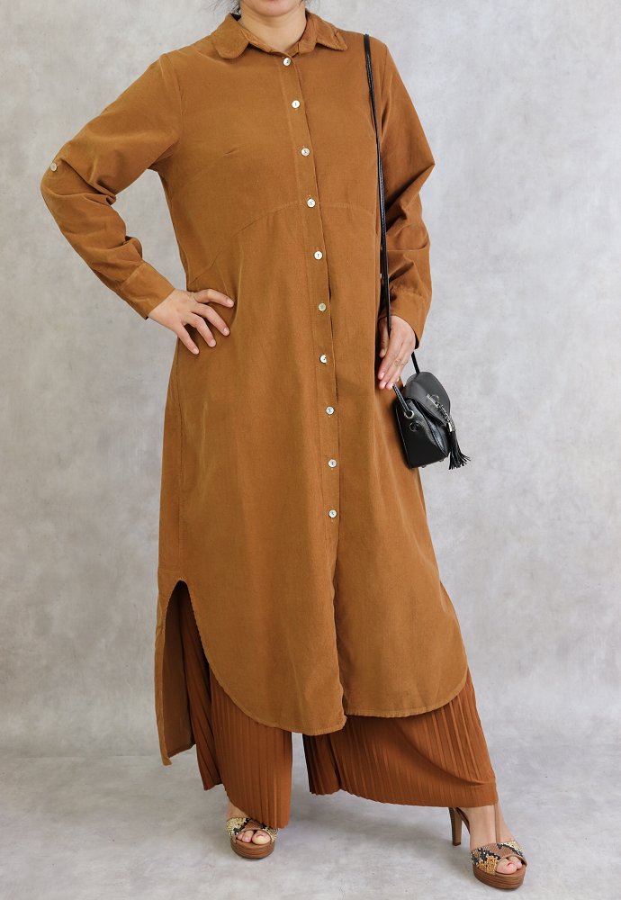 Tunique longue - Chemise boutonnée ample (Vêtement femme voilée) - Couleur tabac - REF. 35916 (29.00 €)