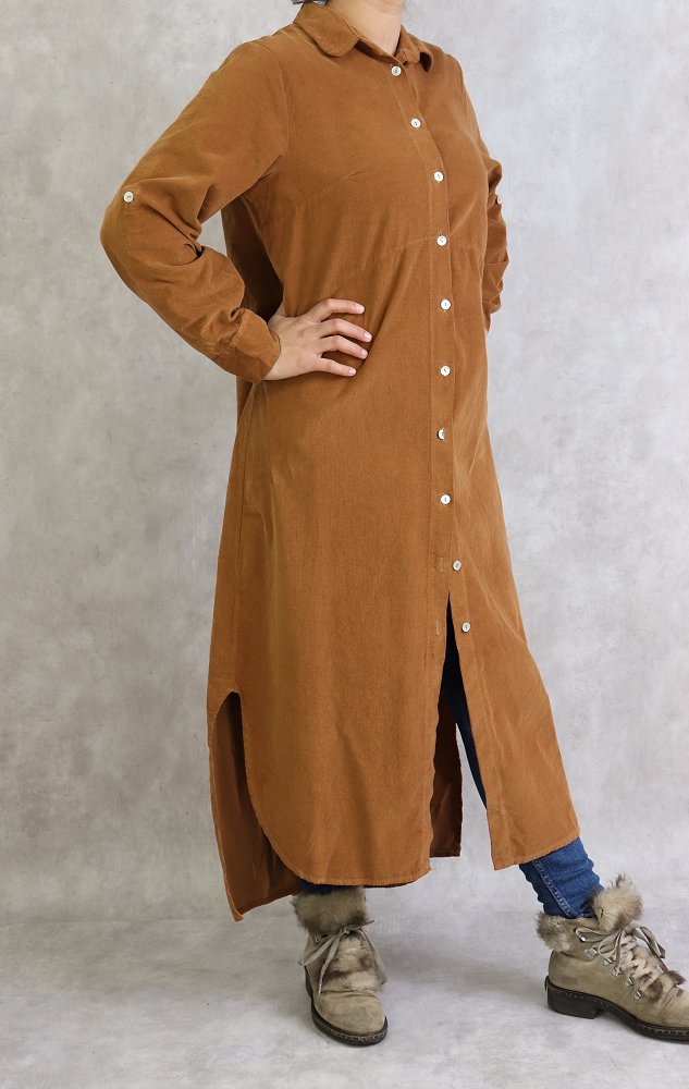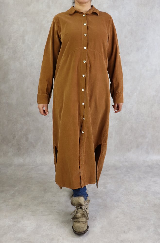 Robe-chemise Velours cotele de couleur unie (Plusieurs couleurs disponibles)