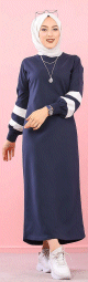 Robe longue style sport pour femme voilée (Robes hijab pas cher pour femmes) - Couleur bleu marine - REF. 32531 (19.90 €) - En Promotion à 16.90 €