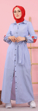 Robe chemise longue imprimée à rayures et ceinture assortie (Vetement femme voilée) - Couleur bleu et blanc - REF. 32753 (29.90 €)