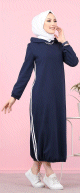 Robe longue à capuche style sweat shirt (Hijab sport pour femme musulmane) - Couleur bleu marine - REF. 32921 (29.00 €) - En Promotion à 22.90 €