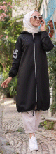 Veste Sweat zippé long et ample avec capuche (Vêtement femme voilée) - Couleur noir - REF. 33190 (29.90 €)