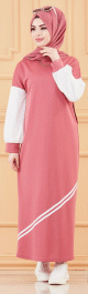 Robe moderne style décontracté (Vêtements modernes pour femmes musulmanes) - Couleur rose et blanc - REF. 36264 (29.90 €)