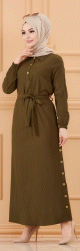 Robe longue boutonnée avec ceinture pour femme (Vêtement style habillé pour hijab) - Couleur kaki - REF. 36621 (32.00 €)