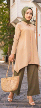 Tunique style habillé pour femme voilée (Vêtement hijab chic) - Couleur beige - REF. 36655 (19.90 €)