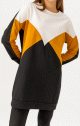 Tunique originale pour femme - Sweat-shirt tricolore - Couleur blanc noir et moutarde - REF. 37773 (19.90 €)