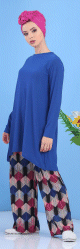 Ensemble 2 pièces tunique + pantalon couleur bleue - Tenue ample et mastour pour femme musulmane - REF. 30588 (35.00 €)