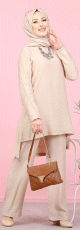 Ensemble 2 pièces assorti de son long hijab pour femme musulmane (Voile inclus) - Couleur beige - REF. 32342 (35.00 €)