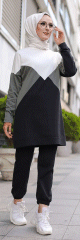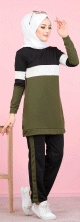 Ensemble de sport deux pièces (Pantalon jogger et Tunique) pour femme voilée - Survêtement à 3 couleurs : kaki, noir et blanc - REF. 32920 (24.90 €)