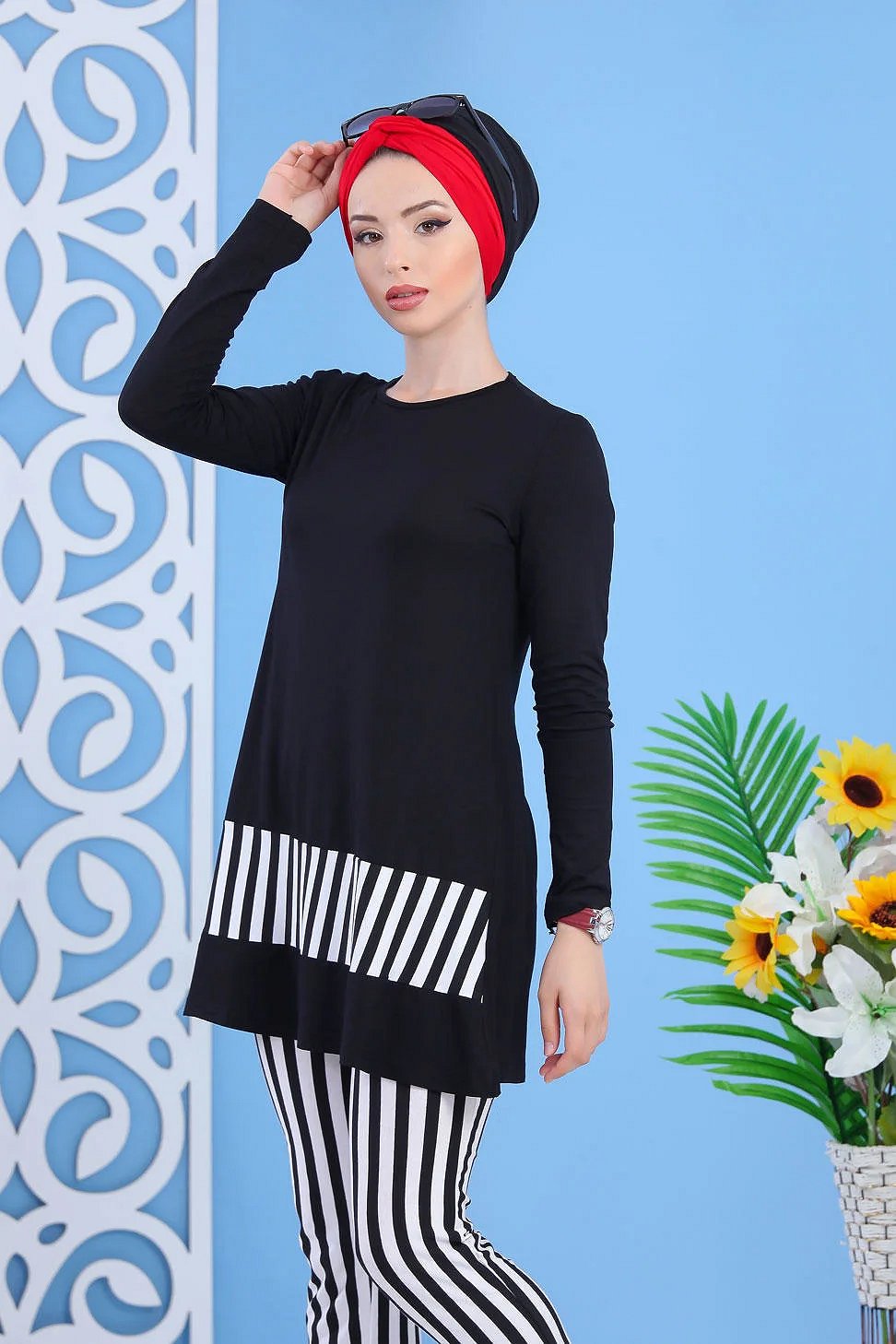 Tunique noire et rouge à rayures pour femme (Tenue de sport style turque vente en ligne) - REF. 30491 (19.00 €)