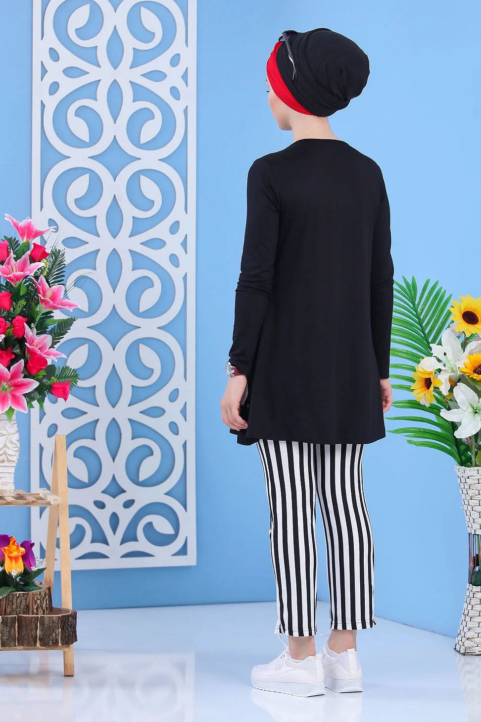 Ensemble décontracté et Survêtement (Hijab Sport pour femme musulmane) - Couleur Noir et blanc - REF. 32526 (25.00 €)