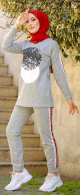 Survêtement "original" 2 pièces (Sweat-shirt et pantalon assorti) pour femme voilée - Couleur gris clair - REF. 32304 (28.00 €)