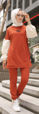 Ensemble survêtement 2 pièces - Tenue de sport hijab adaptée femme voilée (Grande taille disponible) - Couleur Brique - REF. 32896 (25.00 €)