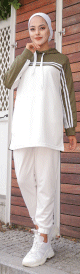 Survêtement Sport femme (Ensemble deux pièces sweet à capuche et pantalon) - Couleur Blanc et Kaki - REF. 34630 (28.00 €)