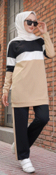 Ensemble bicolore pour femme : Sweat à capuche et pantalon assorti (Tenue décontractée et sport pour hijab) - Couleur beige - REF. 36360 (26.00 €)