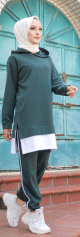 Survêtement décontracté avec extension blanche - Sweat à capuche imprimé et pantalon (Boutique de vêtement pour femme voilée) - Couleur kaki - REF. 35673 (29.90 €)