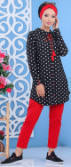 Tunique longue noire à pois blanc et boutons/cordon rouges pour femme - REF. 30512 (19.00 €)