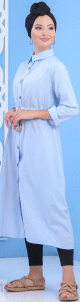 Tunique chemise longue avec cordon et boutons tout au long - Couleur Bleu ciel - REF. 30602 (25.00 €) - En Promotion à 19.90 €