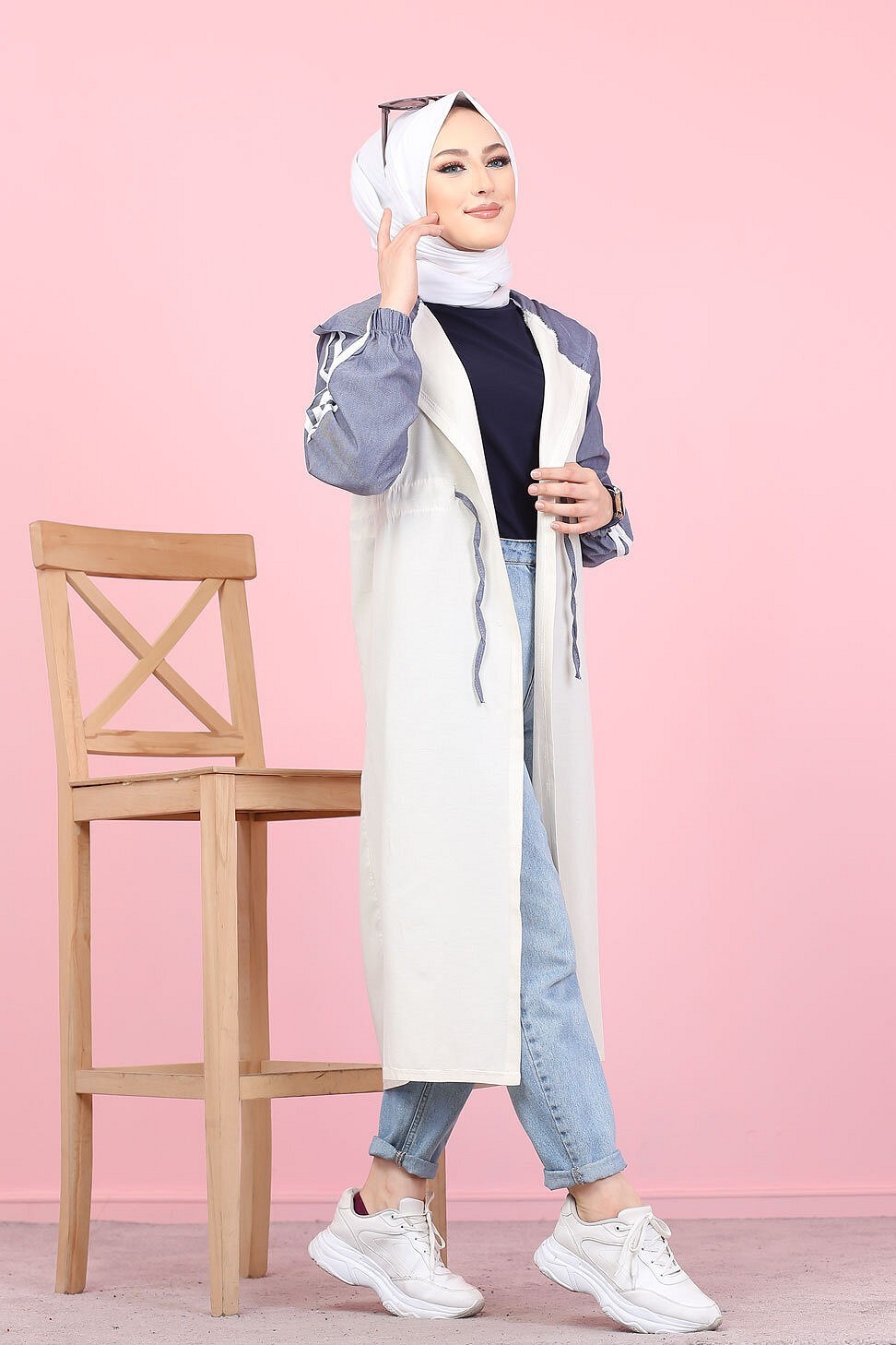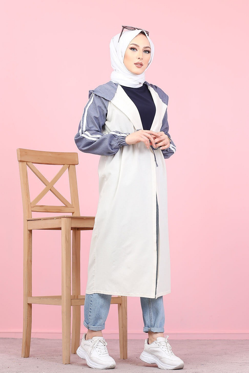 Gilet decontracte a capuche (Vetement moderne pour femme voilee) - Couleur blanc et indigo