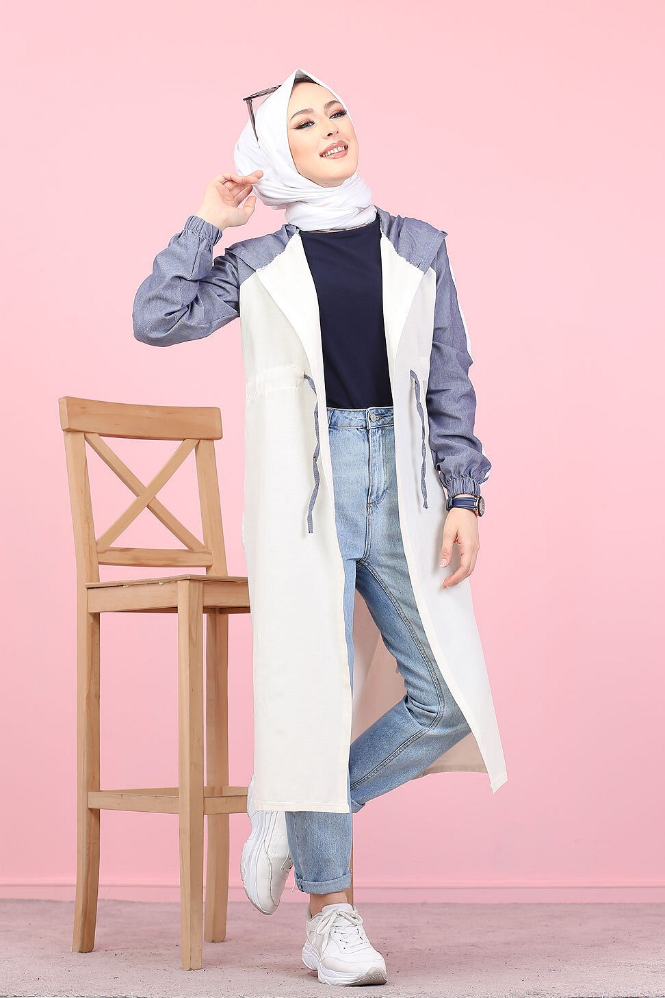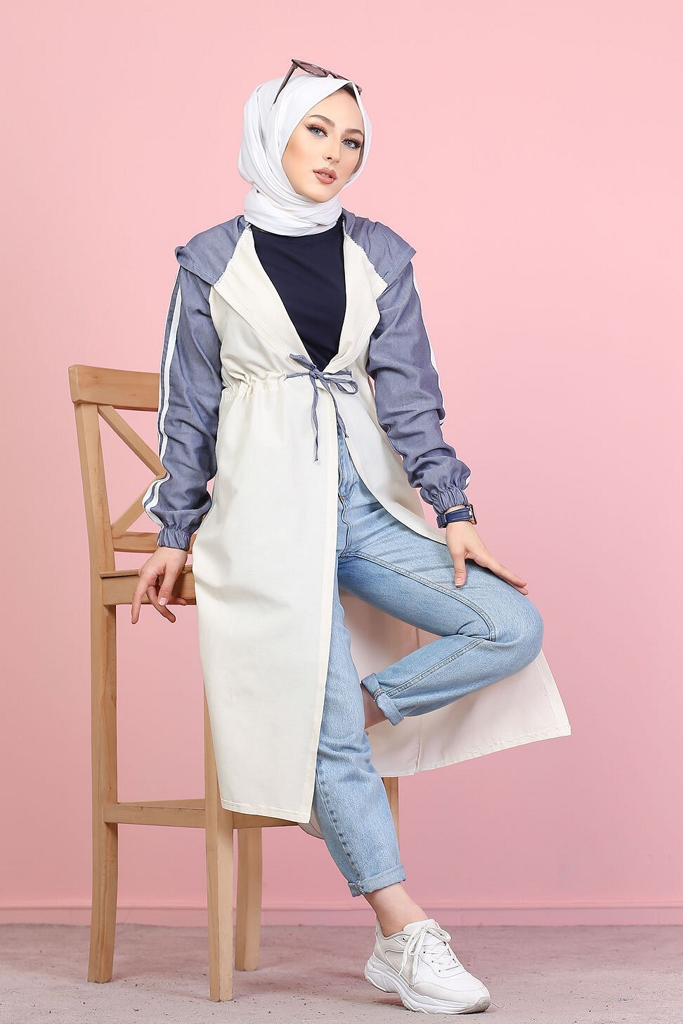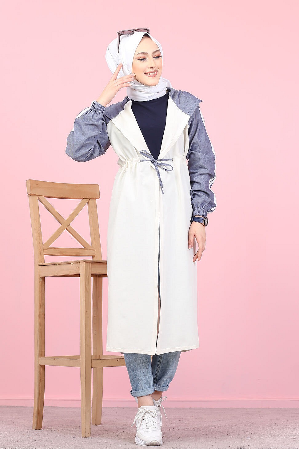 Gilet décontracté à capuche (Vetement moderne pour femme voilée) - Couleur blanc et indigo Vetement & Accessoire