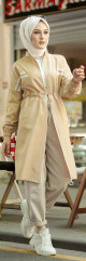 Veste moderne style décontracté avec fermeture zip (Vetement femme voilée) - Couleur beige - REF. 32849 (24.90 €) - En Promotion à 19.00 €