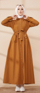 Robe chemise longue avec ceinture et grandes poches (Tenue ample pour hijab) - Couleur tabac - REF. 35757 (28.00 €)
