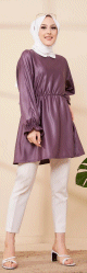 Tunique en skaï (simili cuir) pour femme (Vêtement chic pour hijab) - Couleur prune - REF. 35782 (16.90 €)