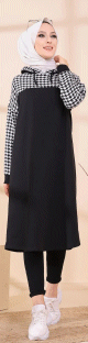 Tunique avec capuche bicolore (Vêtement moderne pour femme voilée - Collection) - Couleur noir et blanc - REF. 35841 (23.00 €)