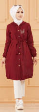 Tunique avec capuche et broderie (Vetement pour femme voilée) - Couleur bordeaux - REF. 36629 (29.90 €)