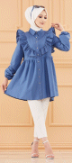 Tunique chemise habillée pour femme (Vêtement Hijab Mode) - Couleur bleu indigo - REF. 36682 (26.00 €)