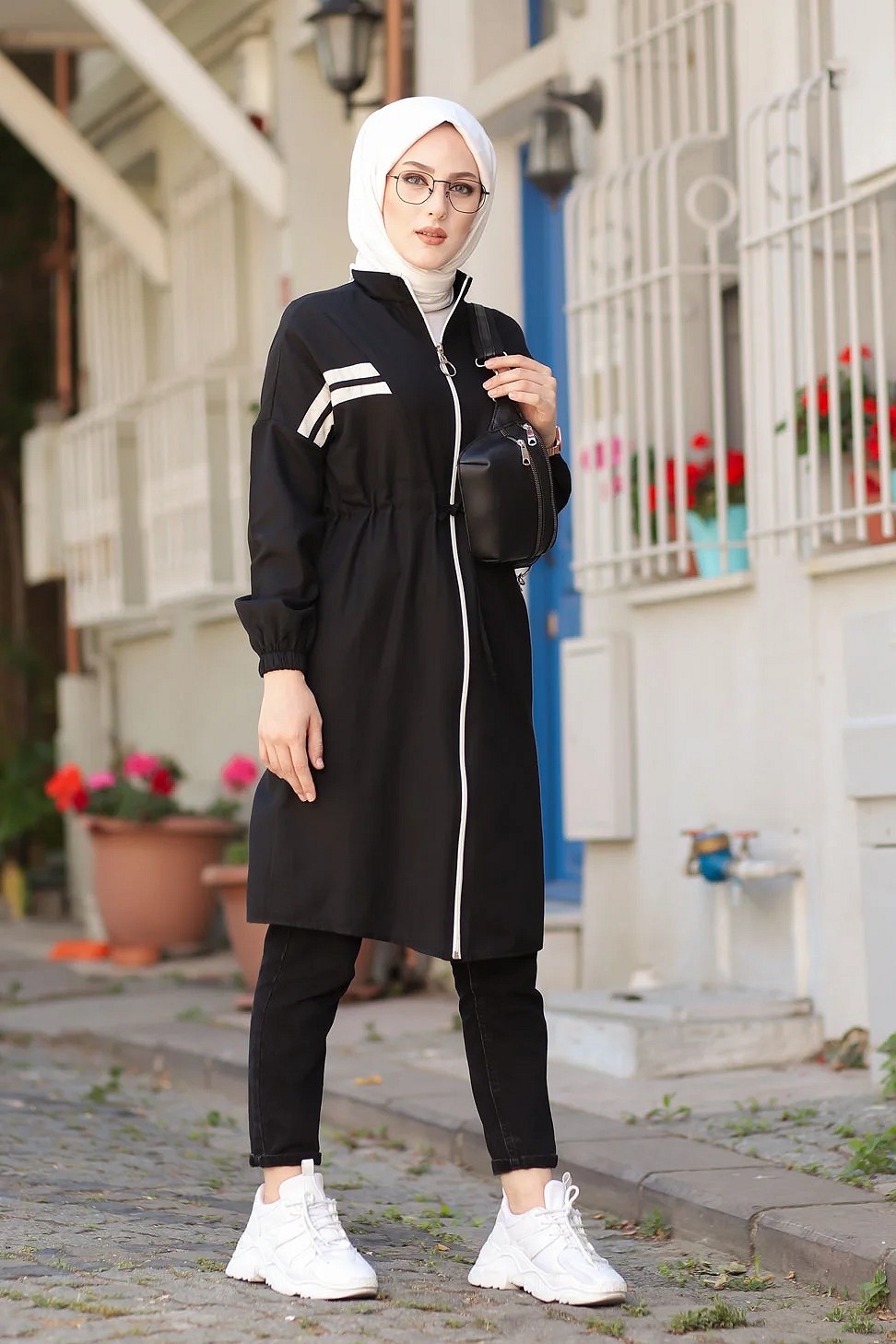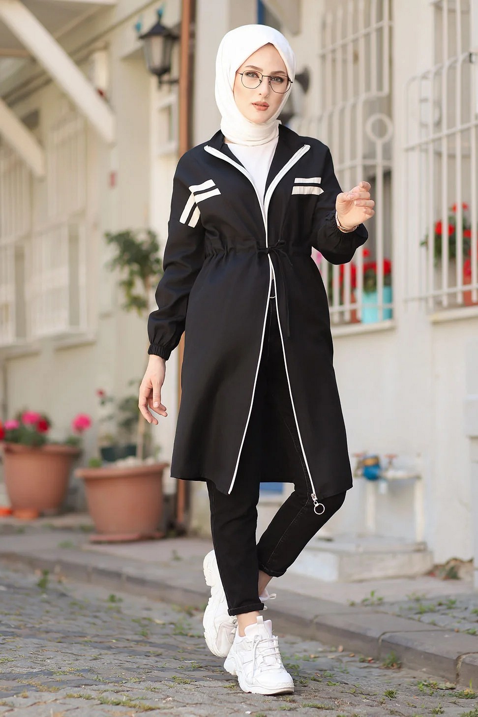 Veste moderne style décontracté avec fermeture zip (Vetement femme voilée) - Couleur noir Vetement & Accessoire