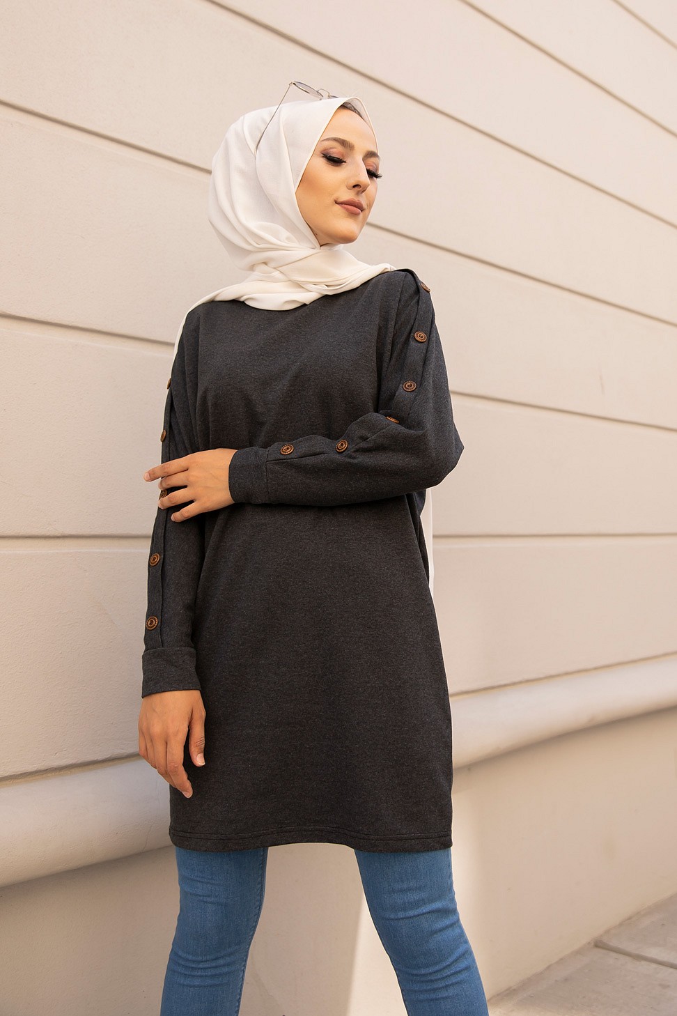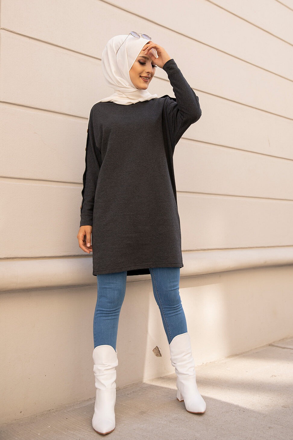 Tunique Casual Style Sweat-shirt (Mode Hijab pour femme) - Couleur gris chiné (Anthracite) Vetement & Accessoire