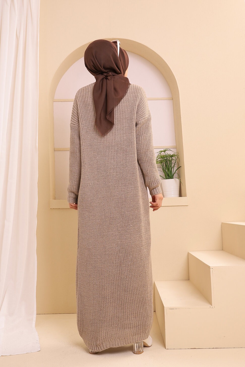 Gilet long en maille - Cardigan femme - Couleur vison Vetement & Accessoire