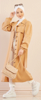 Robe mi longue style Trench (Vêtement hijab) pour femme voilée) - Couleur Beige - REF. 33204 (32.00 €)