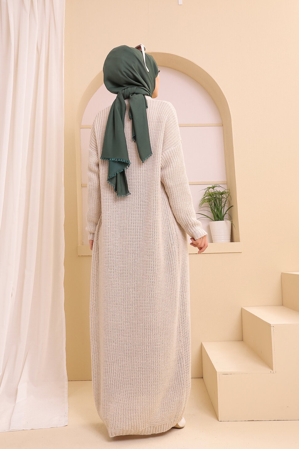 Cardigan long pour femme (Vetement hiver hijab) - Couleur kaki - REF. 35542 (25.00 €) - En Promotion à 14.90 €