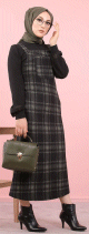 Robe Salopette femme à carreaux de couleur noire et kaki (Tenue Hijab et Modest Fashion) - REF. 32216 (18.00 €) - En Promotion à 14.90 €