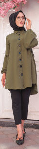 Tunique Chemise ample fermeture boutons pour femme (Vêtement Mastour Hijab) - Couleur kaki - REF. 33130 (24.00 €)