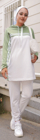 Survêtement femme (Ensemble deux pièces sweet à capuche et pantalon) - Couleur Blanc et Vert amande - REF. 34626 (28.00 €)