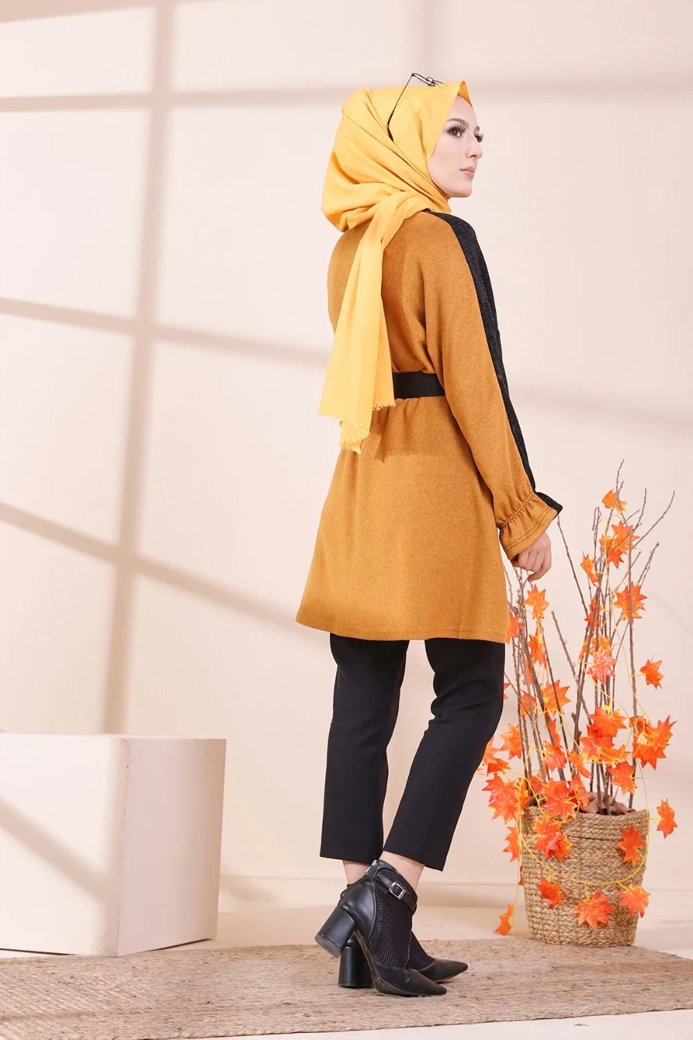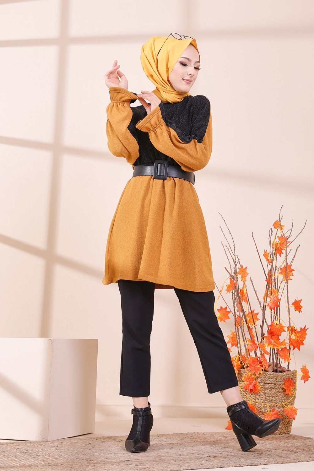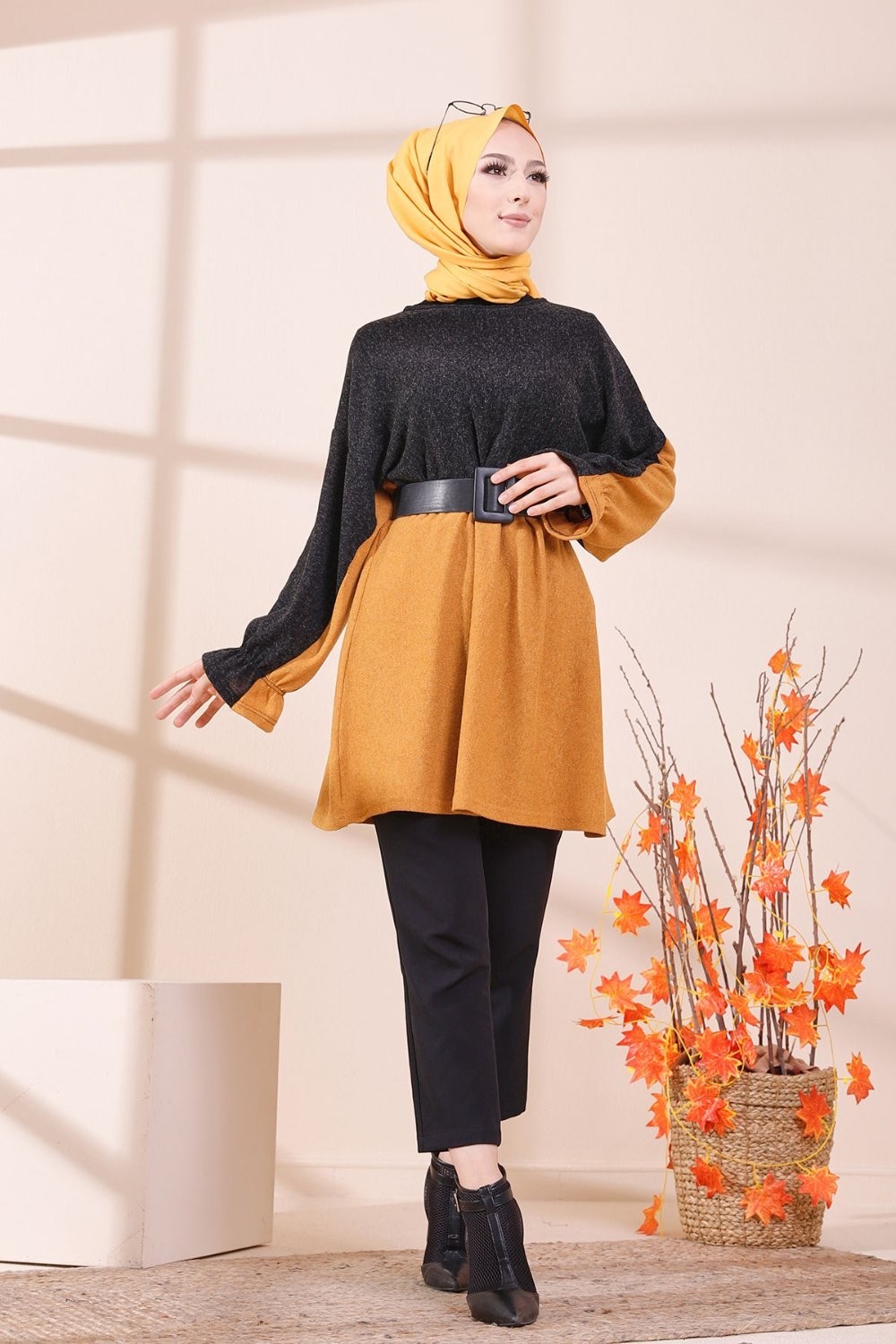 Tunique bicolore pour femme (Vetement hijab) - Couleur noir et moutarde Vetement & Accessoire