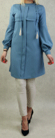 Tunique-Chemise imprimée avec capuche (Vetement femme Hijab Turquie) - Couleur Bleu clair - REF. 33817 (18.00 €)