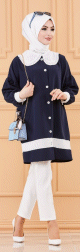 Tunique style habillé pour femme (Vêtement chic pour hijab) - Couleur bleu marine et blanc - REF. 36574 (29.90 €)