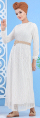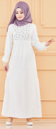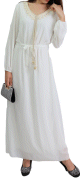 Robe de soirée longue perlée chic et classe (Vêtement hijab habillé pour femme) - Couleur blanc - REF. 35987 (36.00 €)