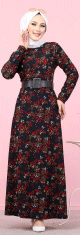 Robe longue fleurie pour femme - Couleur bleu marine - REF. 32244 (25.00 €)