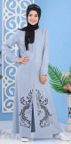 Robe longue boutonnée motif floral pour femme musulmane voilée (Grande taille disponible) - Couleur bleu-gris clair - REF. 32543 (35.00 €)