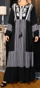 Robe coton à manches longues à rayures et broderies florales pour femme - Couleur noir - REF. 33582 (29.00 €)