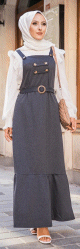 Robe bretelle (Salopette ) et sa ceinture assortie pour femme (Vetement hijab en ligne) - Couleur anthracite (gris foncé chiné) - REF. 33848 (25.00 €)