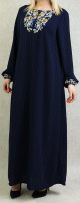 Robe manches longues avec broderie pour femme - Couleur bleu marine - REF. 34986 (28.00 €)