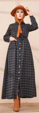 Robe chemise longue boutonnée à carreaux - Saison Automne-Hiver 2025 - Couleur anthracite - REF. 35648 (24.90 €)