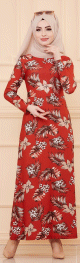 Robe fleurie en crêpe pour femme - Couleur brique - REF. 35938 (24.90 €)